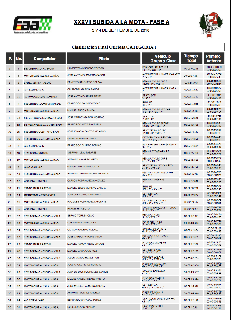 La Fase B, ya desde el sofá de mi casa, también discurrió con varios accidentes que volvieron a comprometer los horarios. En la montaña se va al límite y eso evidentemente hace que los incidentes se sucedan. Nota destacada del fin de semana: el Alcalde de Alcalá, Carlos Antonio Hinojosa, fue el copiloto del coche cero durante todo el fin de semana y acompañó a Salvador Tineo con el espectacular Seat León MKII supercopa. En Alcalá, la subida es el acontecimiento deportivo del año.